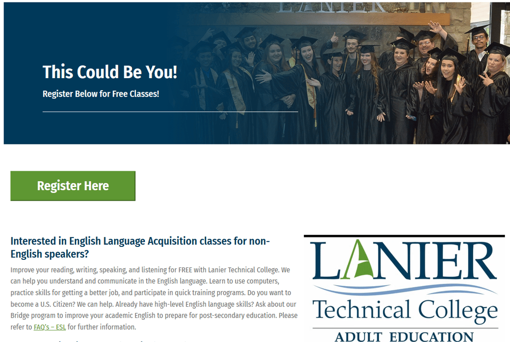 FREE ESL CLASSES AT LANIER TECHNICAL COLLEGE