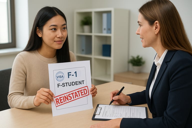 “Khôi phục tình trạng visa F1” — hay tiếng Anh gọi là F1 visa reinstatement — là quy trình xin phục hồi lại tình trạng hợp pháp của sinh viên quốc tế (F-1) khi họ bị mất tình trạng du học sinh hợp pháp tại Mỹ do một lý do nào đó.