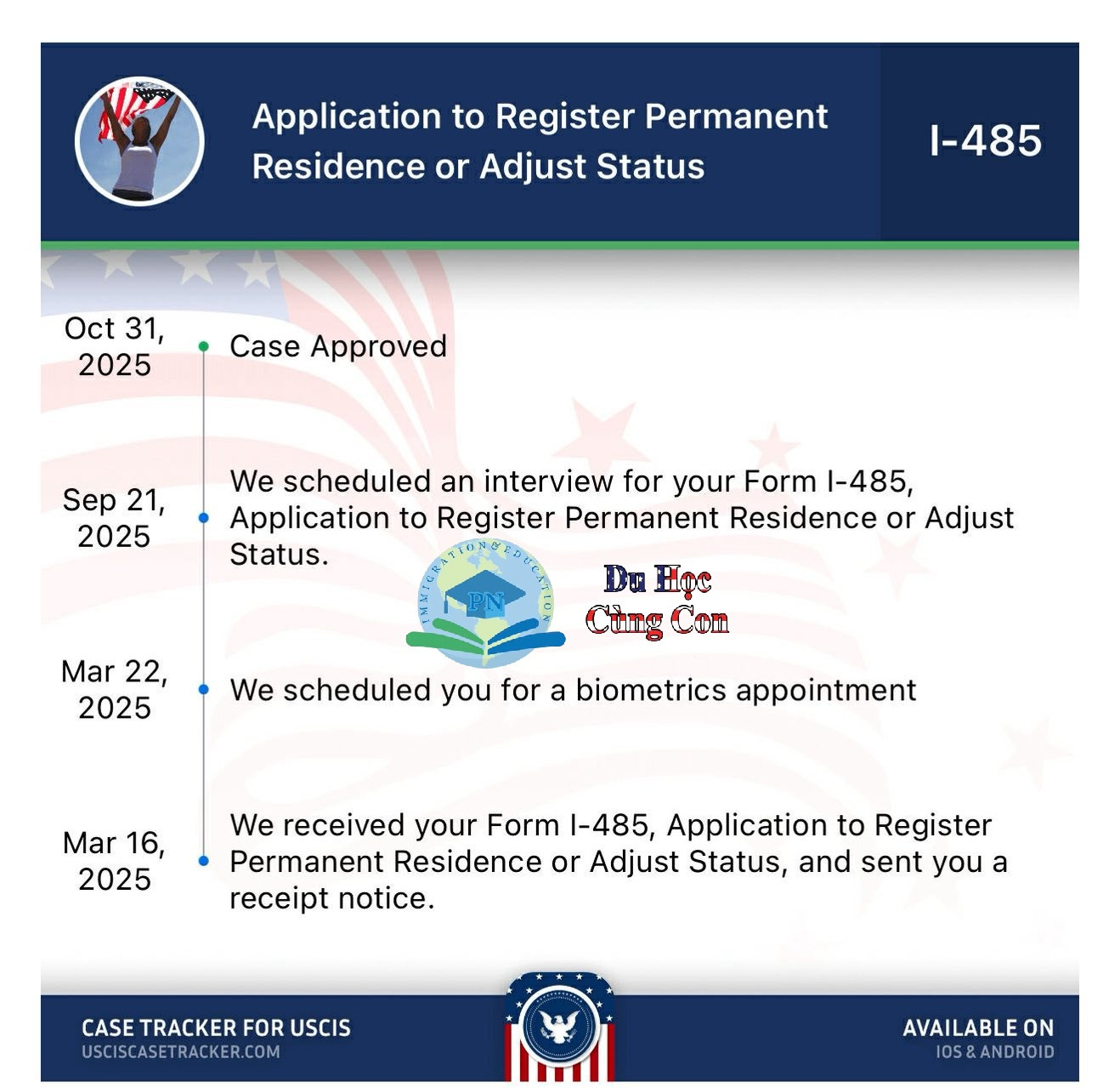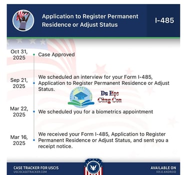 Ngày 31/10/2025 - đơn chuyển diện I-485 xin thẻ xanh tại Mỹ được duyệt